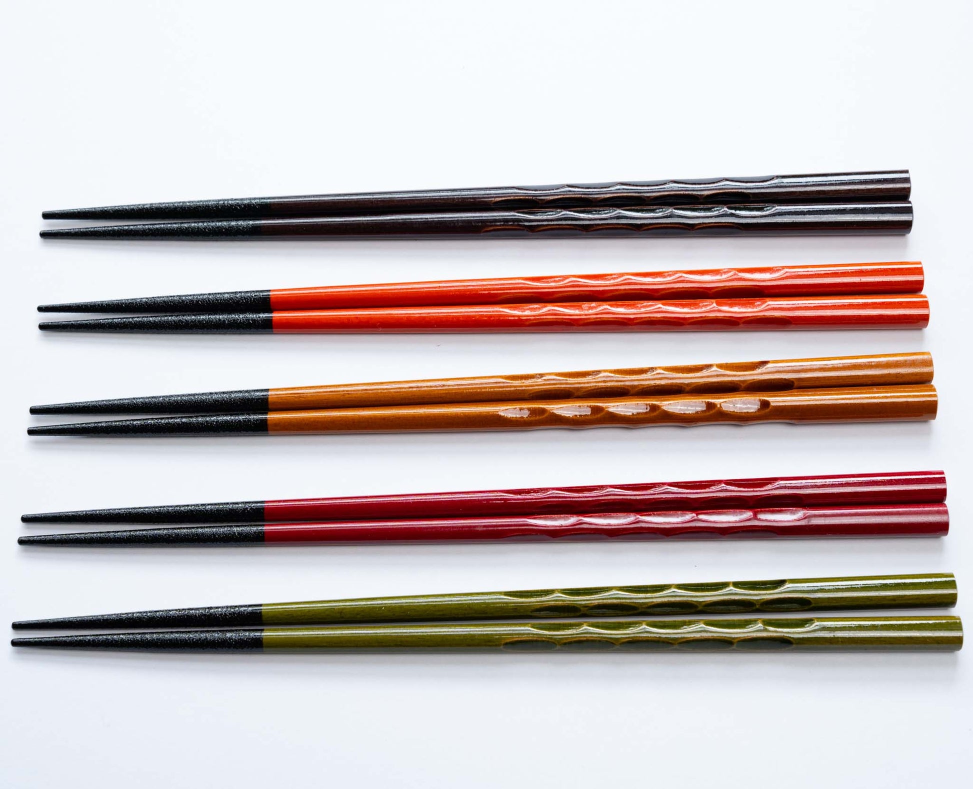 Indulge in the beauty of traditional Wakasa lacquer showcased on each pair, featuring a stunning palette of five rich hues. These lacquered chopsticks not only exude modern elegance but also provide antibacterial protection for a clean dining experience.
