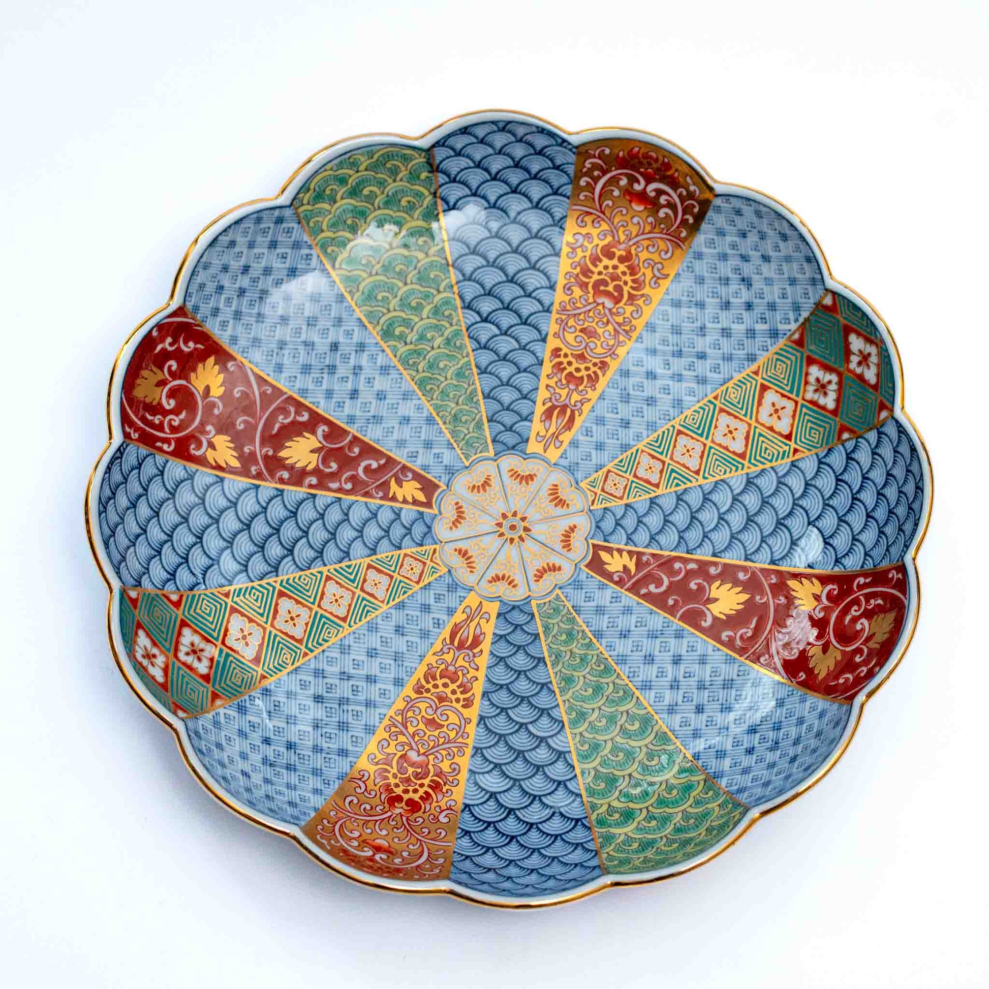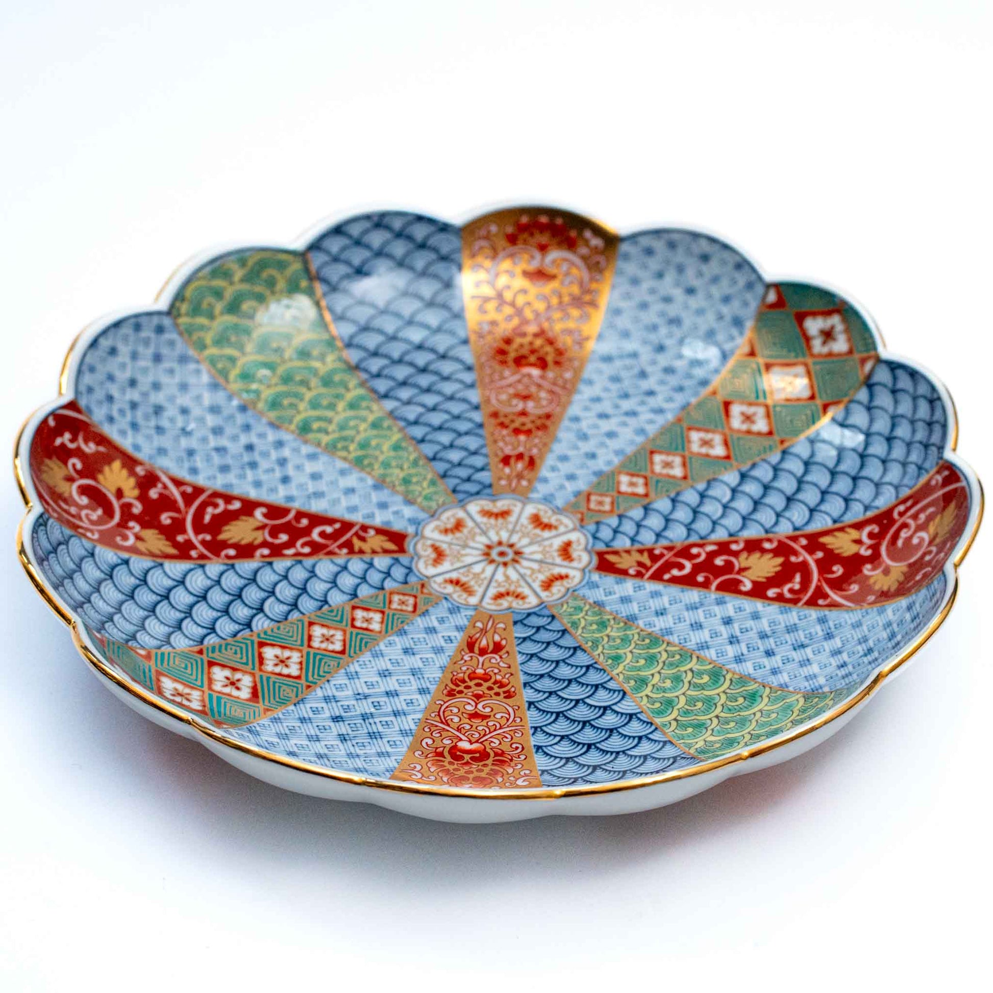 The plate is adorned with the "chrysanthemum split" design, evoking the revered old Imari style. Delicate lines intricately weave from the outer rim to the centre, embellished with traditional patterns, each imbued with its own symbolic significance.