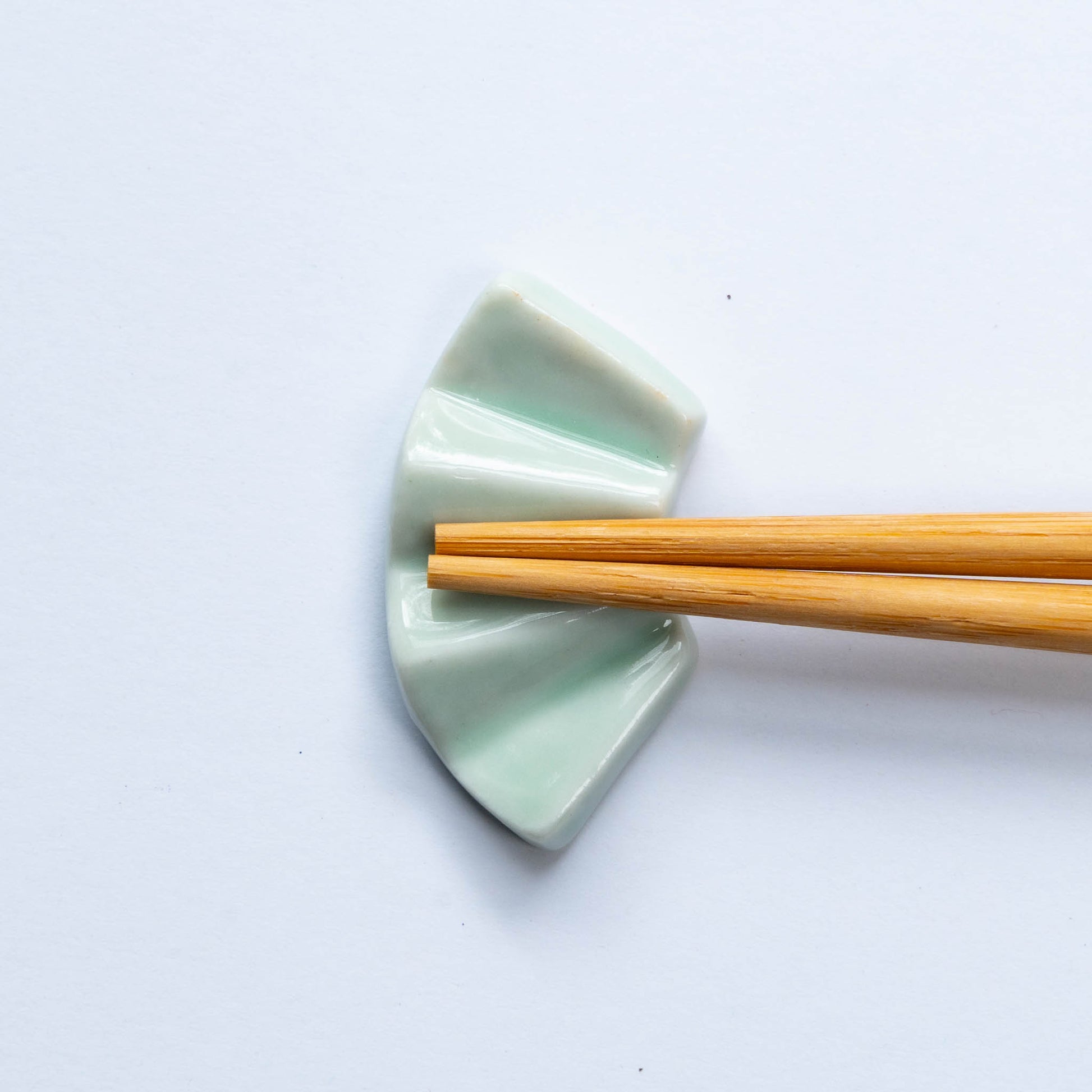 Confectionery wooden shaped lucky chopstick rest (Fan Celadon)