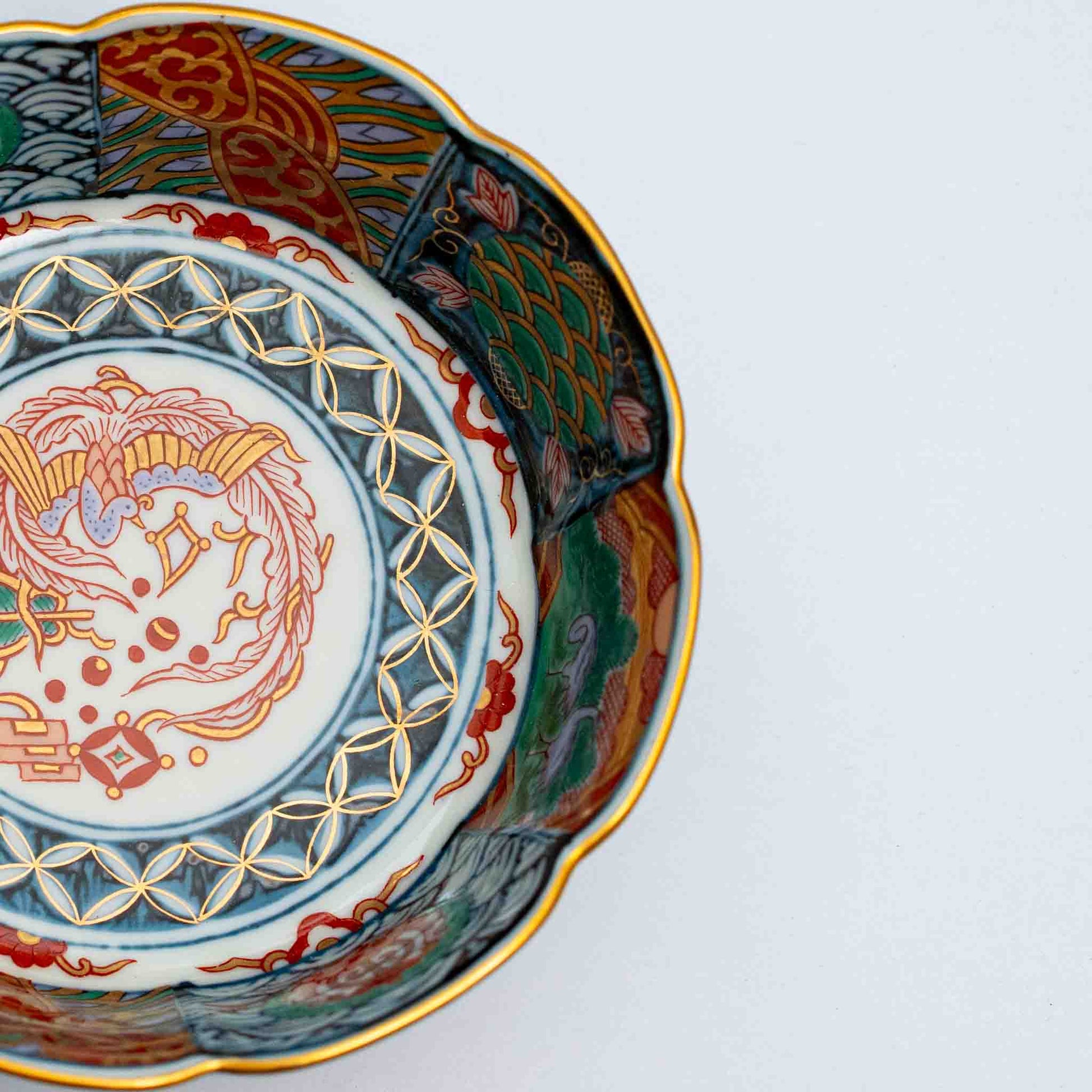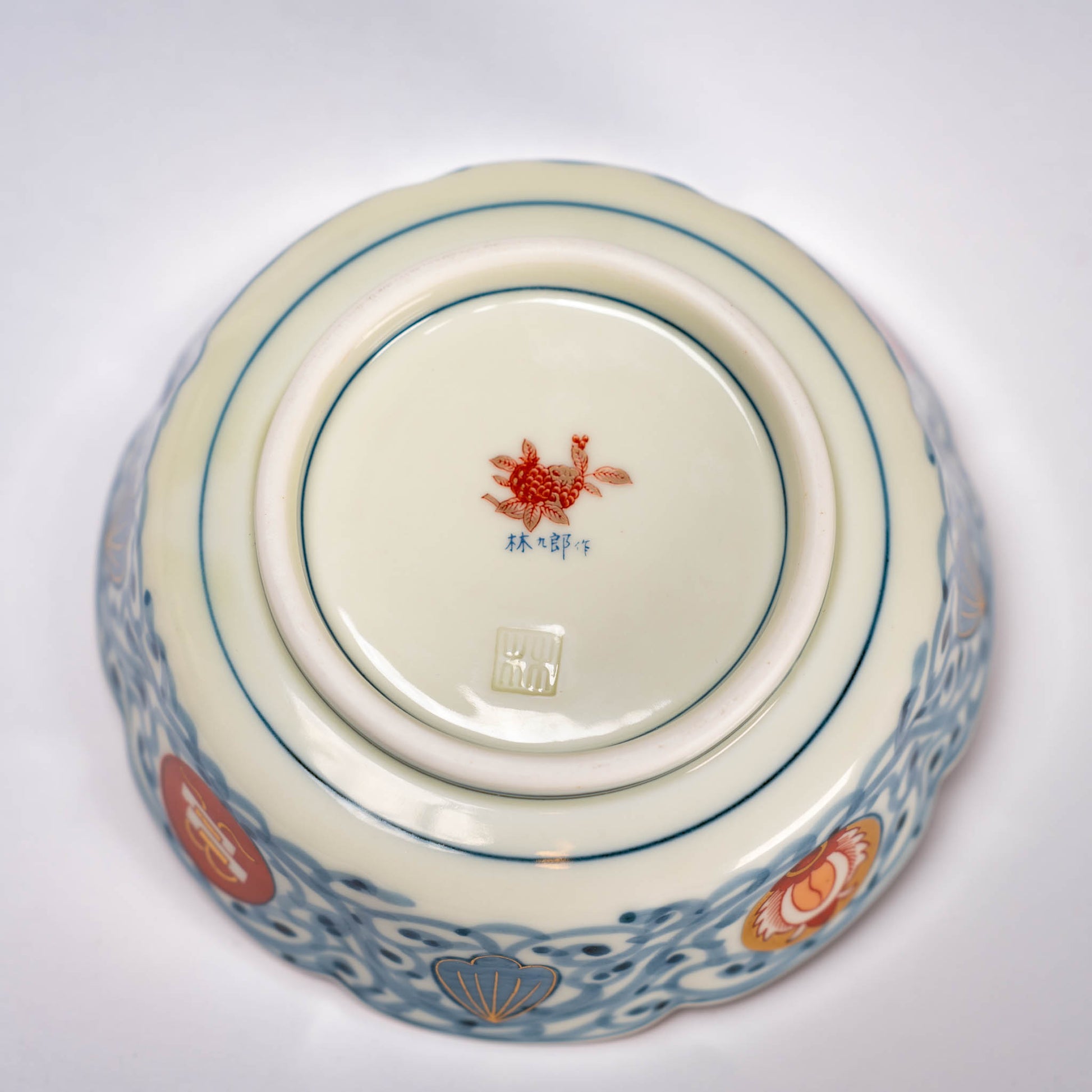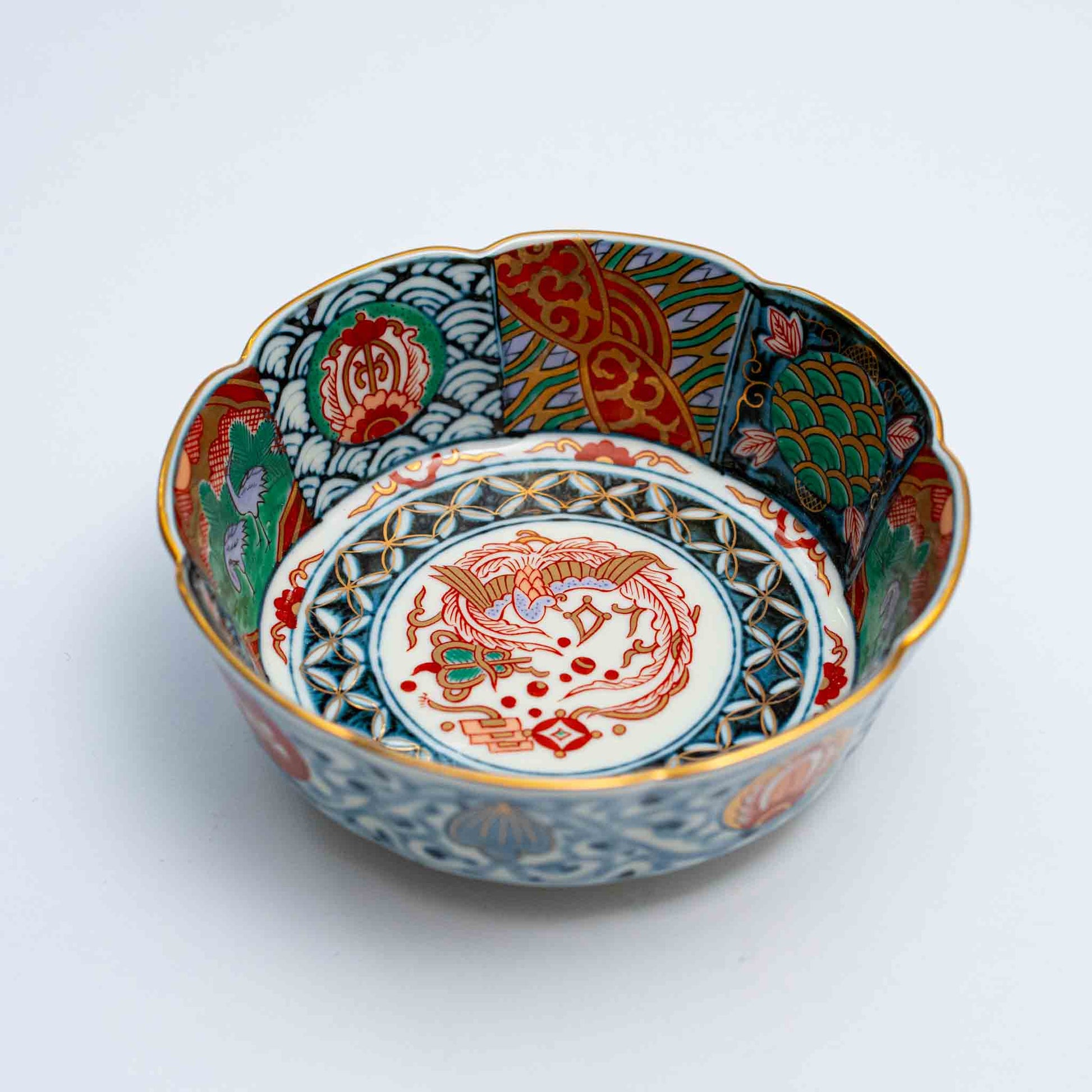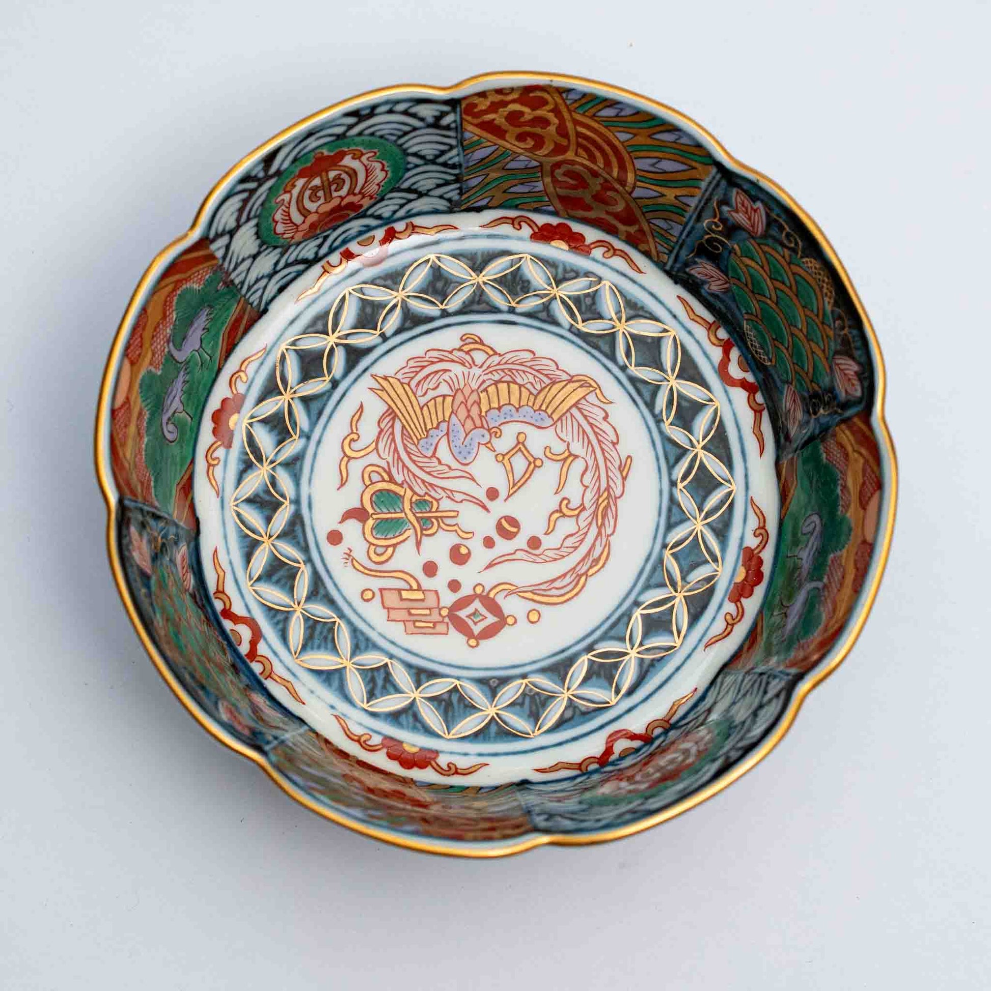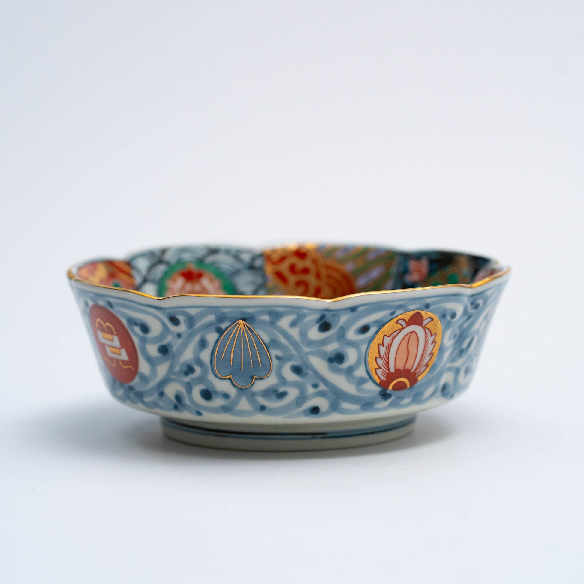 Rinkurou Kiln Imari Style Dyed Nishiki and Arabesque Bowl