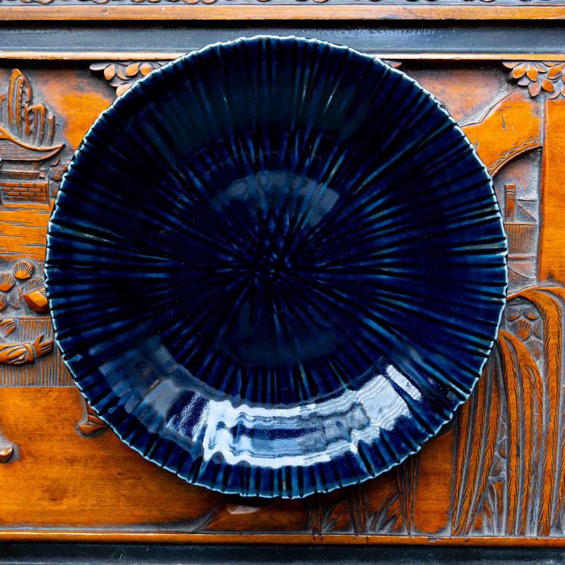 Presenting an exclusive creation from East Table (formerly known as Tableware East) - an original masterpiece. It features a meticulously carved tobacco leaf pattern, available in a gorgeous pearlescent navy blue that strikes the perfect balance between understated elegance and vibrancy. This versatility ensures that it seamlessly complements both Japanese and Western dining styles, making it an indispensable addition to your daily tableware collection.