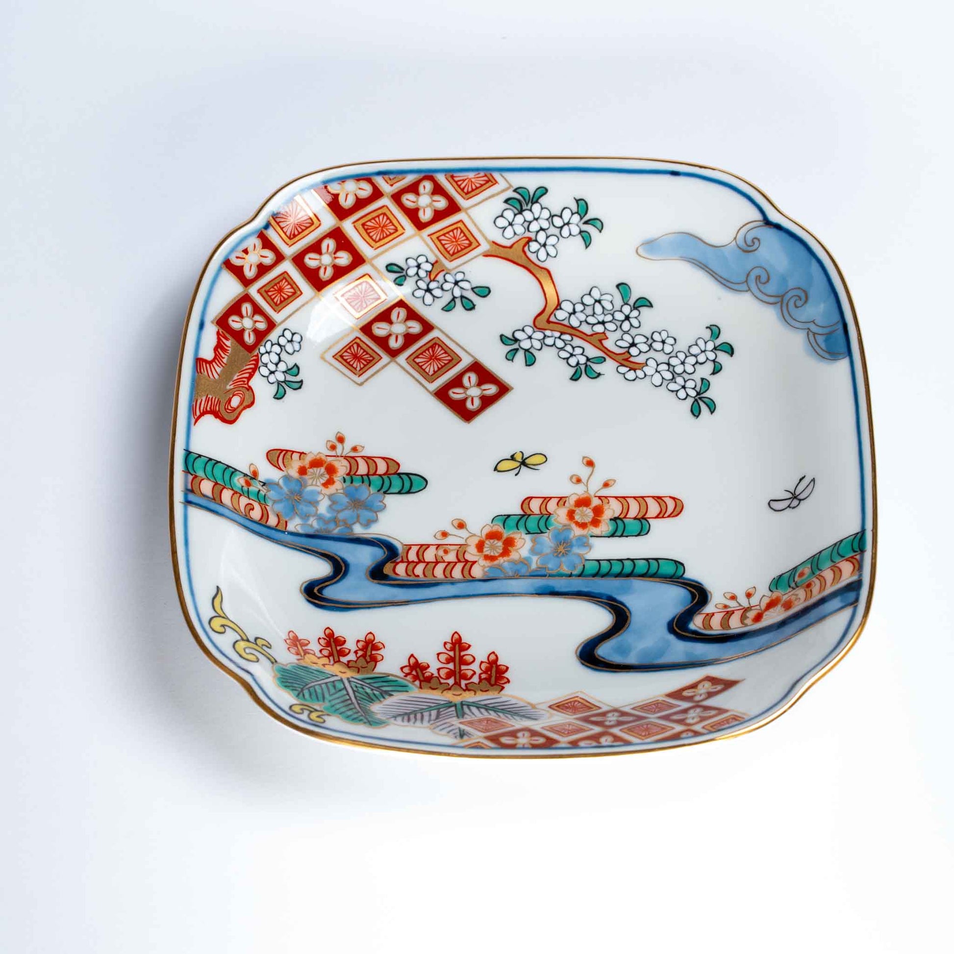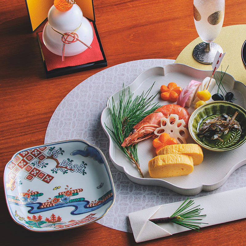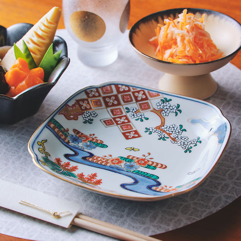 Introducing our exquisite Japanese square plate from the Kuro Hayashi Kiln, featuring a timeless beauty in the Old Imari style.