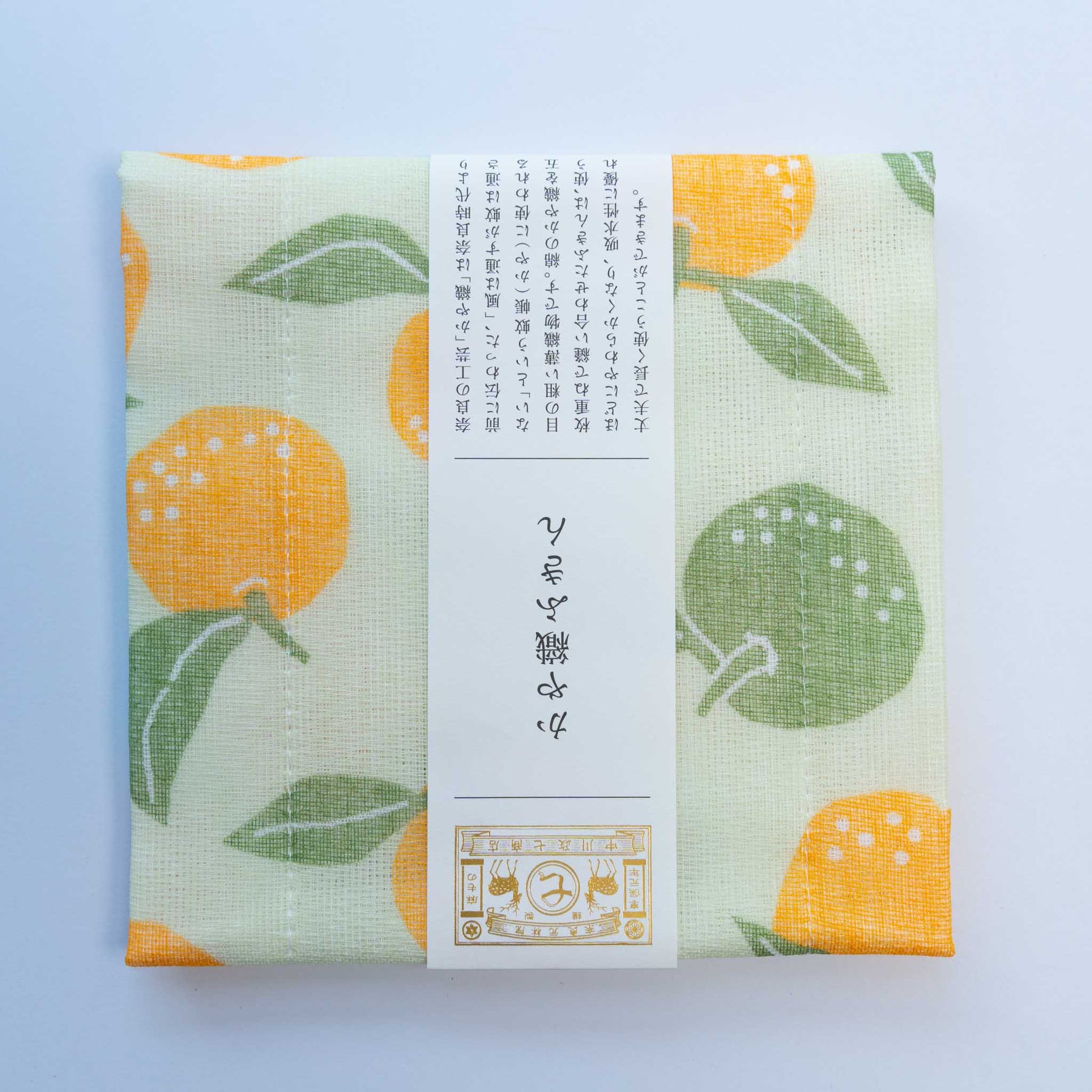 Yuzu has a refreshing acidity and aroma that adds accent to a variety of dishes. I drew the young, blue fruit and the ripe, yellow fruit on a Kayaori dish towel. The Nara craft ``Kayaori'' is a thin, open-woven fabric used for mosquito nets that was passed down before the Nara period and was said to allow wind to pass through but not mosquitoes. This dish towel is made of 5 layers of cotton kaya-weave sewn together, and the more you use it, it gets softer, has excellent water absorption, and is durable and can be used for a long time. Also suitable for utensils, wipes, towels, etc. For small greetings and handing out items.