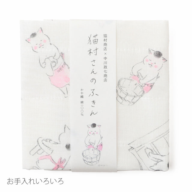 It portrays Nekomura diligently tending to household chores with the help of Kayaori dish towels. Nekomura-san, renowned for ingeniously incorporating Kayaori dish towels into various aspects of daily life, including dish drying, table wiping, serving as pot holders, and functioning as trusty rags, serves as a motivating presence in your everyday kitchen endeavors.
