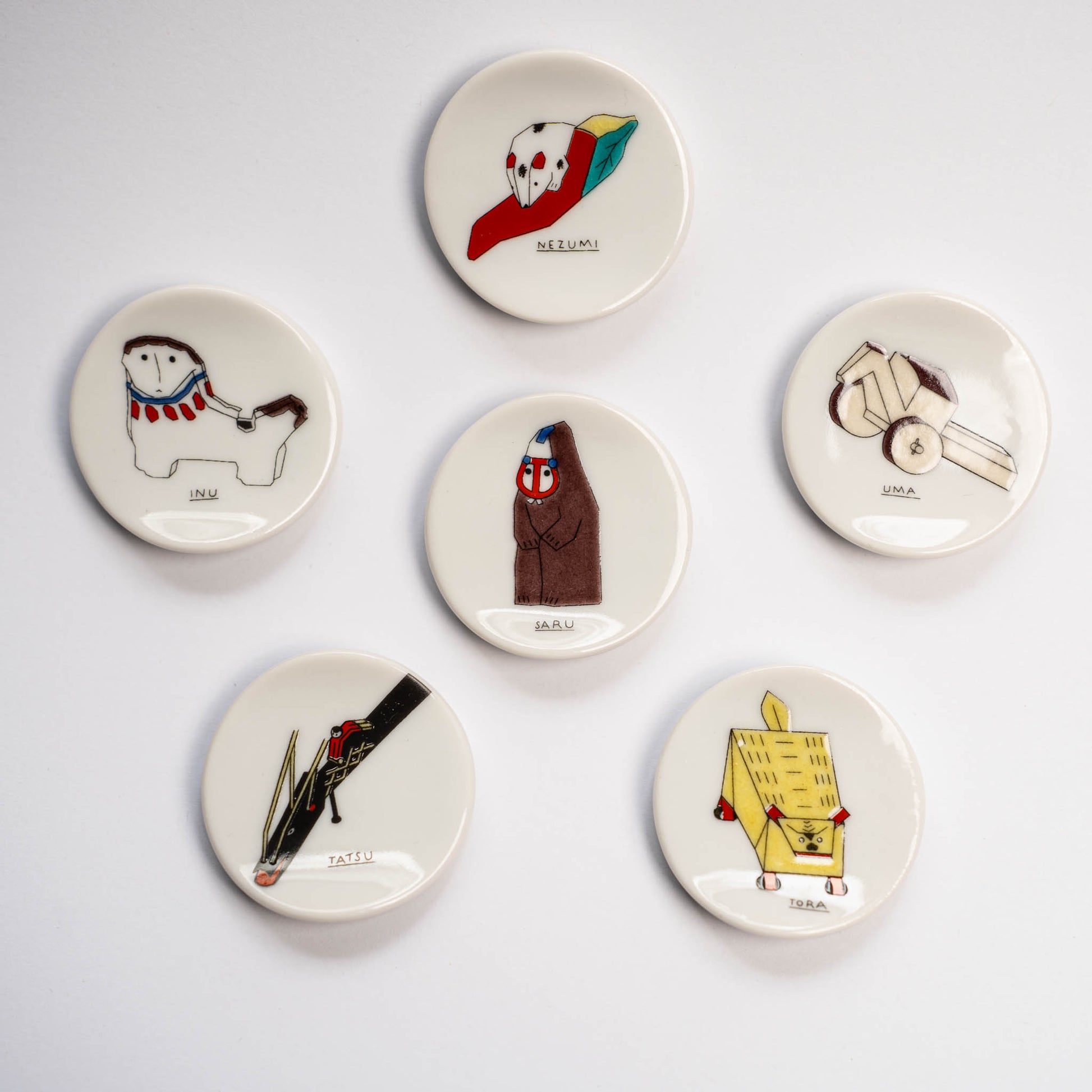 Philipp Weisbecker is an artist and illustrator based in Paris and Barcelona. His unique perspective, line expression, and linear yet mysteriously warm drawings have captivated many people. His illustration of a local toy with a zodiac motif has been made into a chopstick rest using KUTANI SEAL. KUTANI SEAL is a brand born from the desire to "enjoy Kutani ware more easily." We are proposing casual vessels using transfer stickers made of the same ingredients as Kutani ware paints.